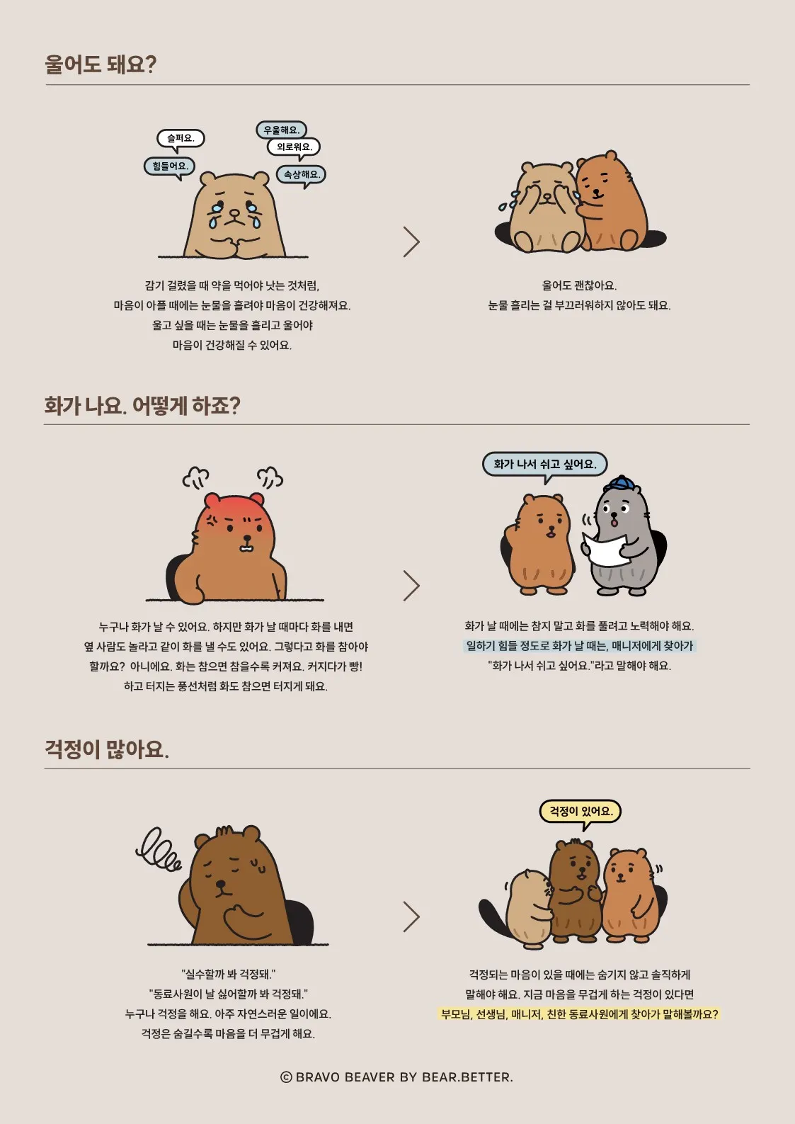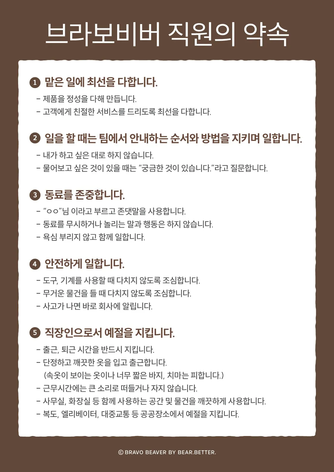 브라보비버는 취업 후 지속가능한 근로를 위해 사원들의 마음을 살핍니다.
